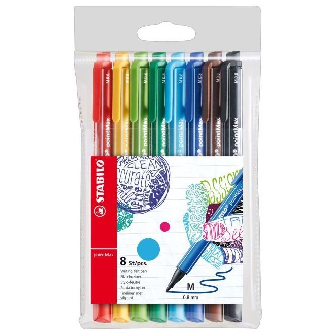 Liner 8 culori/set, varf 0,8mm, PointMax Stabilo SW488801