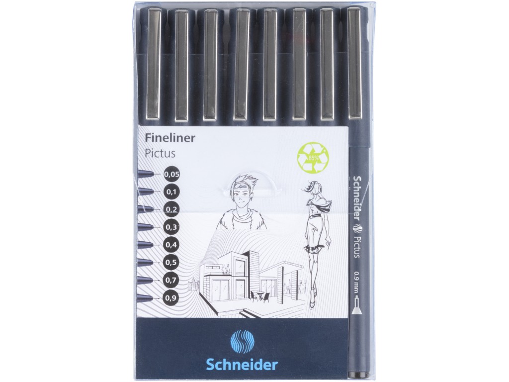 Liner negru, 8 buc/set, varf dimensiuni diferite, Fineliner Pictus Schneider