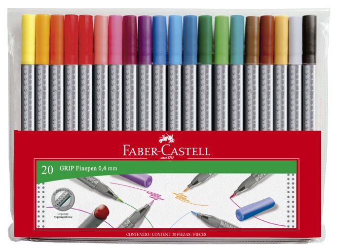 Liner 20 culori/set, varf 0,4mm, Grip Faber Castell-FC151620
