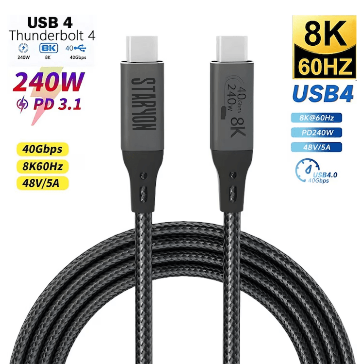 Cablu de date USB4 50 cm, USB-C la USB-C, transfer date 40Gbps, incarcare rapida 240W, suport video 8K@60Hz