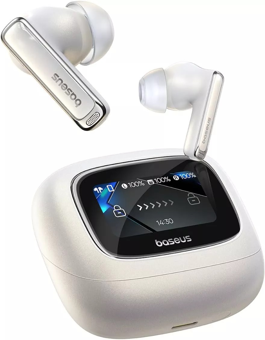 Casti in-ear, alb, bluetooth 5.4, ANC, Smart Touch Display, Hi-Res Audio, M2s Ultra Baseus
