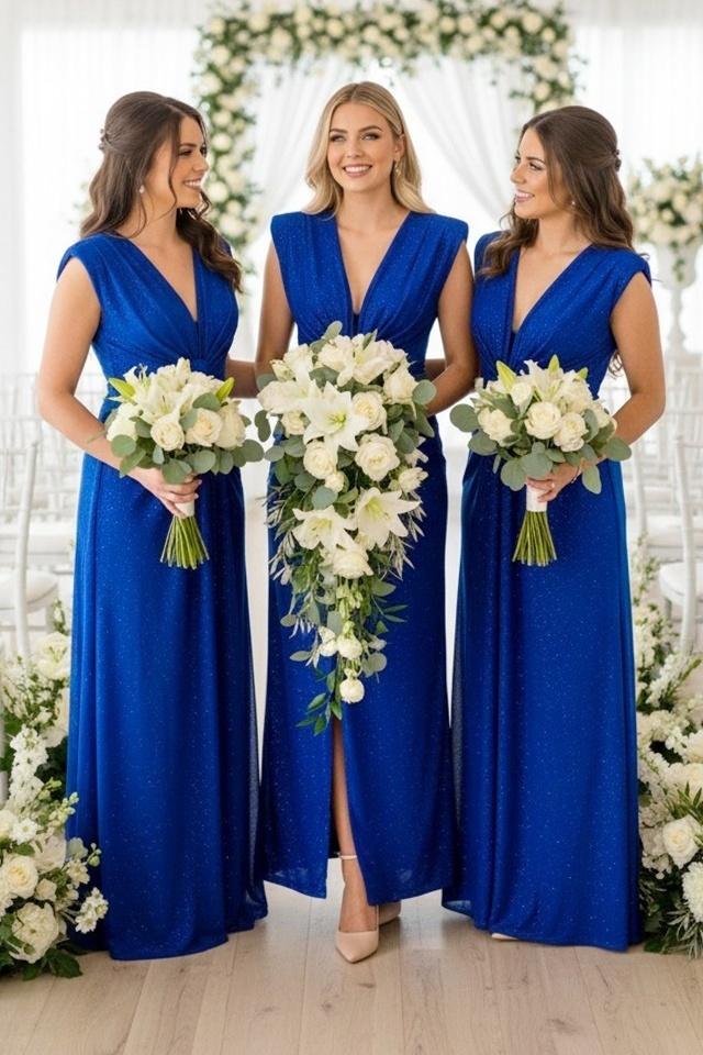 Set 3 bucati Rochie lunga de seara JHOSY, cu paiete, Albastru Royal, Marime S/M