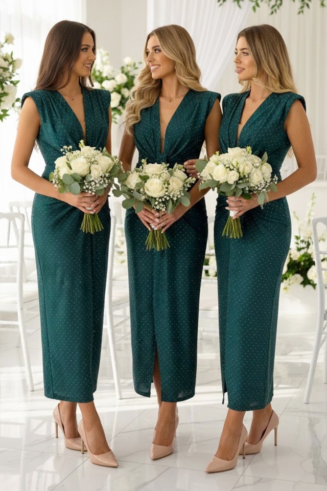 Set 3 bucati Rochie de seara cu decolteu adanc, JHOSY, Verde inchis, Marime S/M