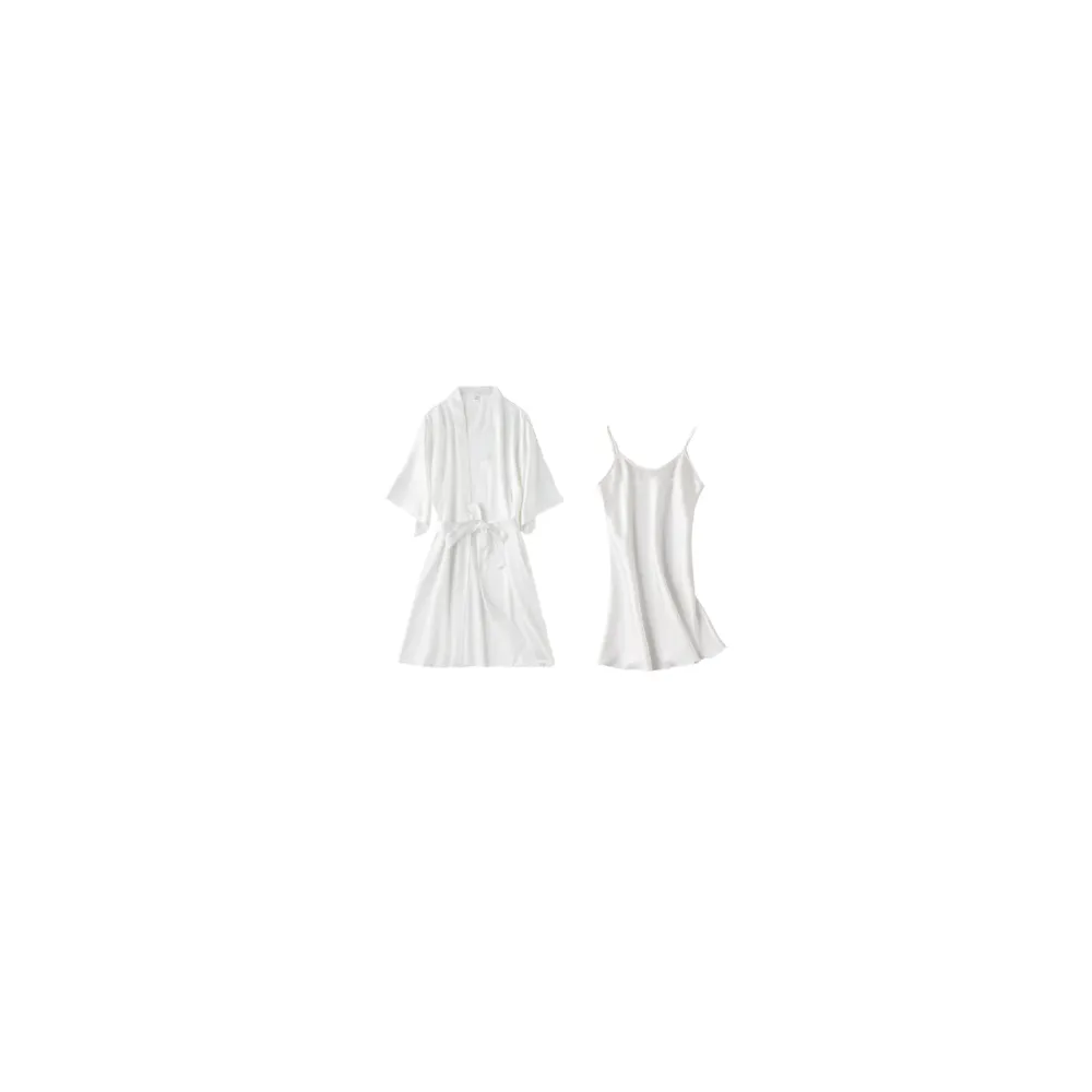 Compleu 2 Piese Halat + Rochie Satin Alb