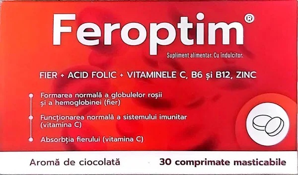Feroptim cu aroma de ciocolata, 30 comprimate masticabile, Zdrovit
