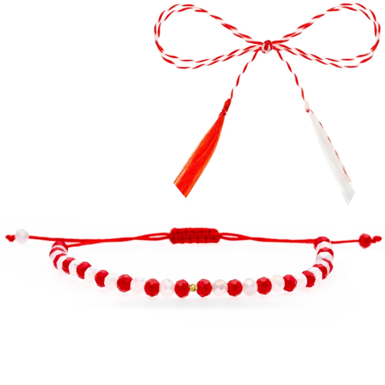 Mărțișor tip Brățară cu 6 bile din argint de 2.5mm și miyuki rosu cu alb