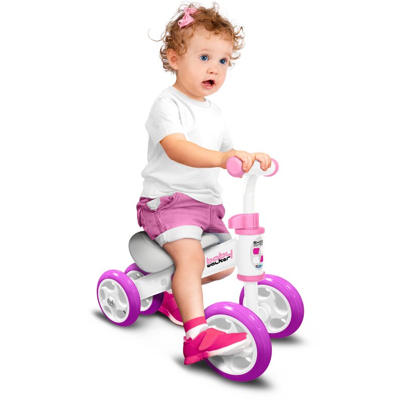Bicicleta fara pedale, Skids, Baby Walker, Cu 4 roti din spuma, Pana la 20 kg, Otel, Manere moi, 12 luni+, Purple/White