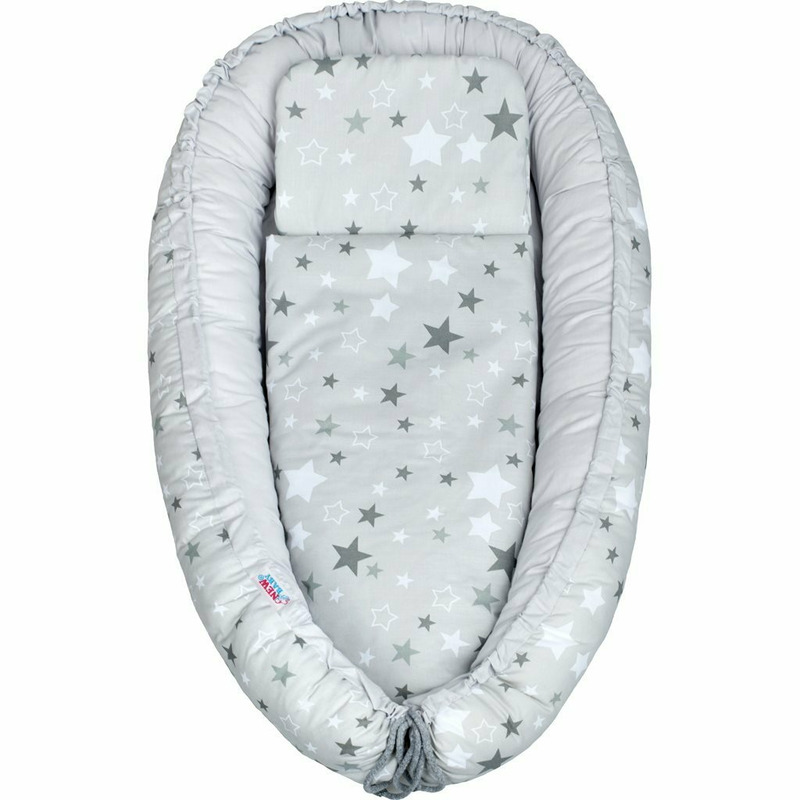 Set 3 piese, New Baby, Baby Nest, Cu paturica si pernuta, White/Grey stars