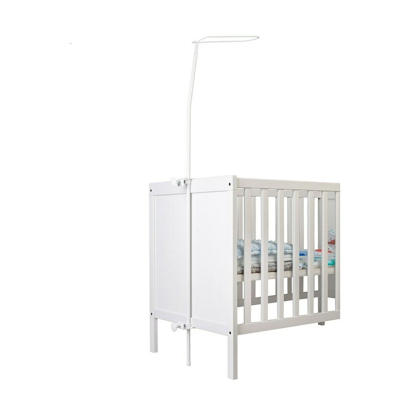 Patut din lemn bebe, 120x60 cm, Cu laterala culisanta, Din lemn de pin si mdf, Cu roti, Cu sina speciala pentru dentitie, Stabil si rezistent, White, FreeON, Mia