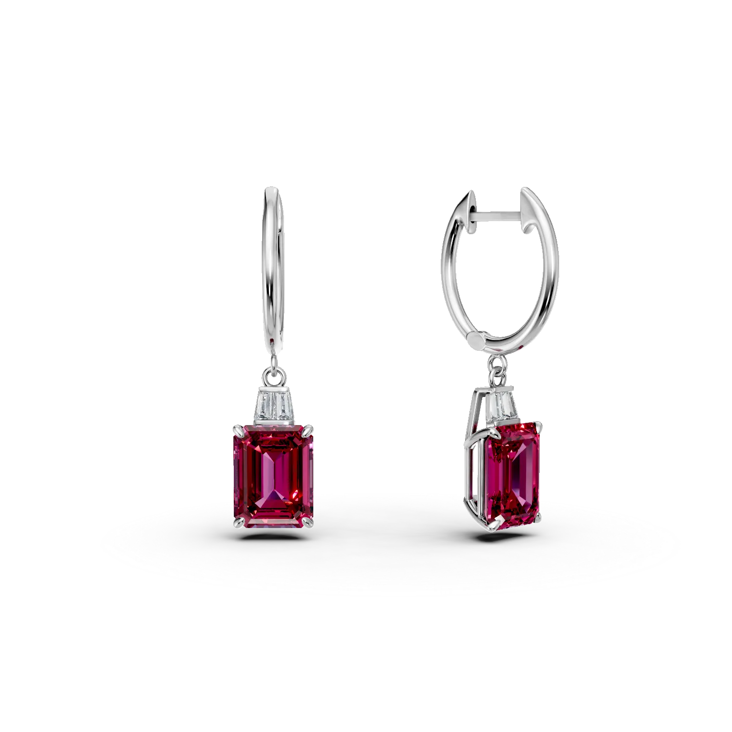 Cercei din aur alb cu rubine si diamante de 6.4ct create in laborator