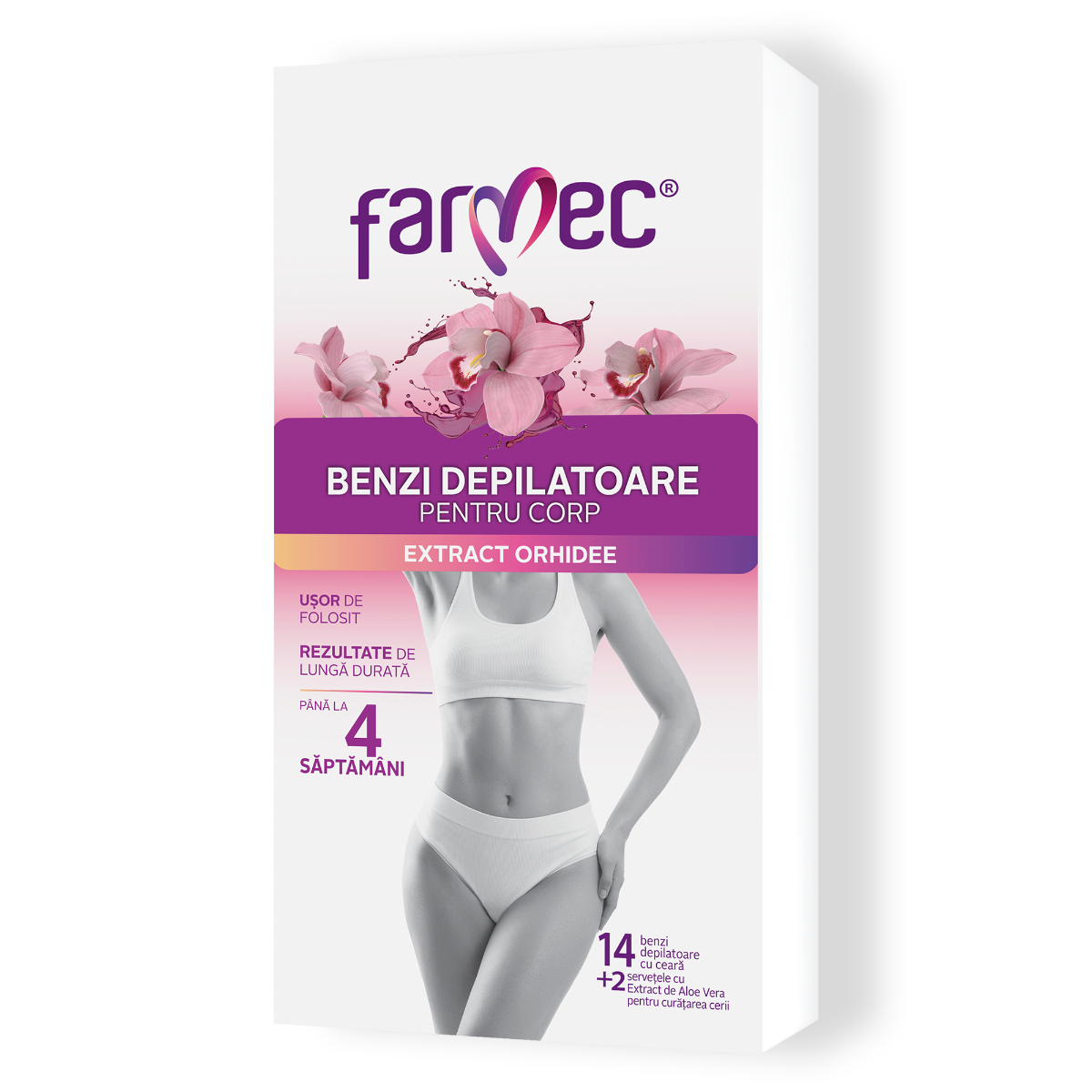 Benzi Depilatoare De Corp Pentru Piele Sensibilă Cu Extract De Orhidee, Farmec, 14 Benzi