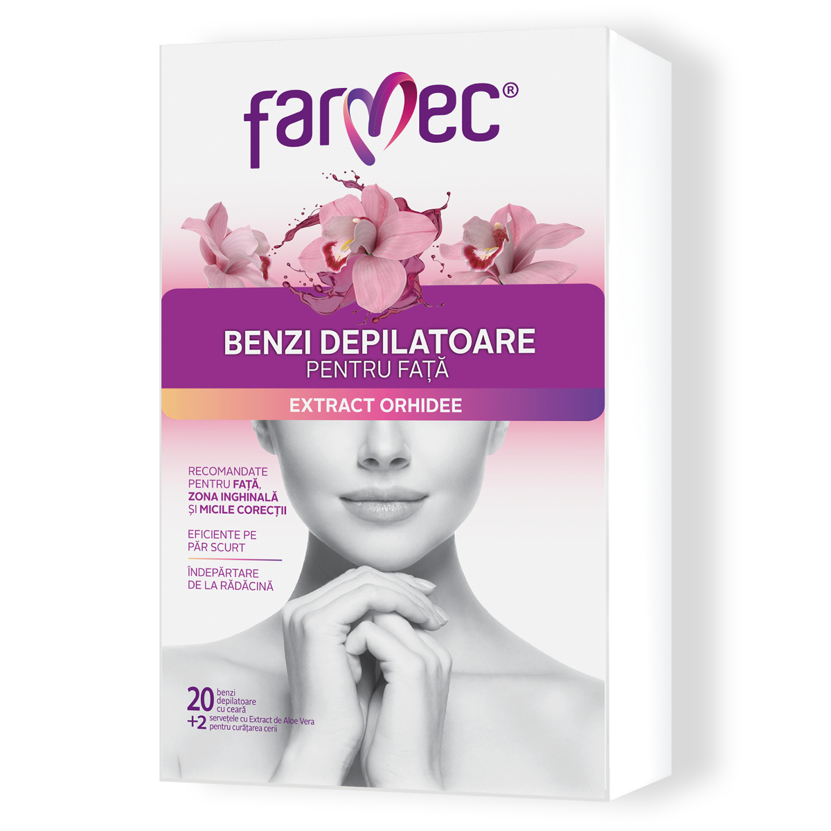 Benzi Depilatoare Pentru Față și Zone Delicate Cu Extract De Orhidee, Farmec, 20 Benzi