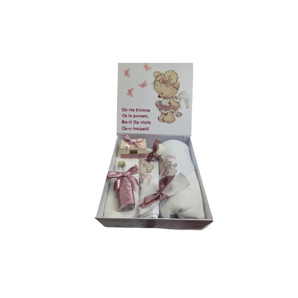 Trusou Botez cu 8 Piese, Ursulet cu Iepuras, Culoare Roz - TB03