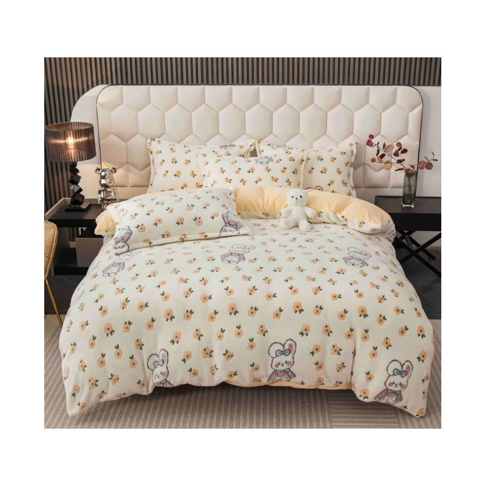 Lenjerie Cocolino 4 Piese Pentru Pat Dublu cu Elastic- JOJ809 Iepuras Crem