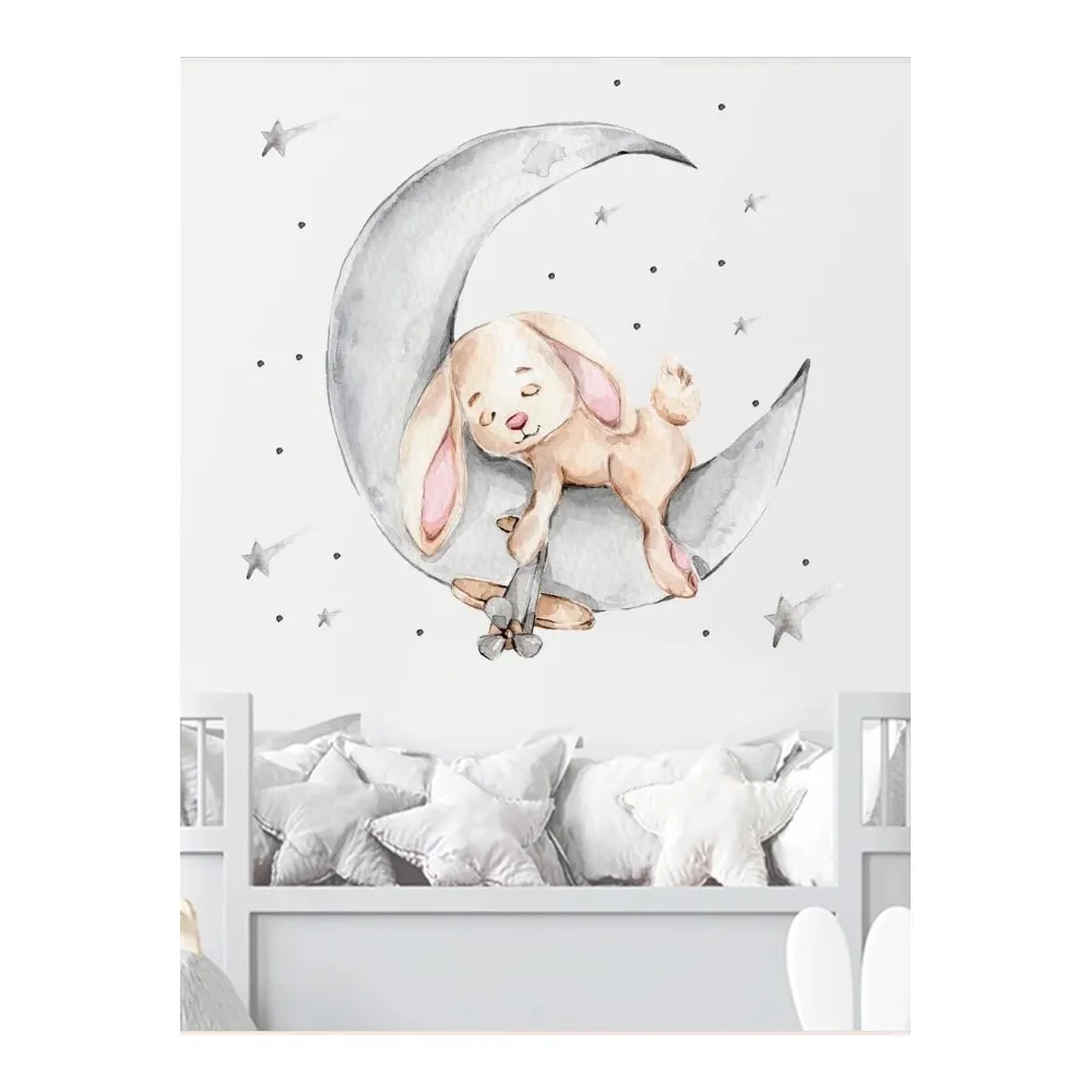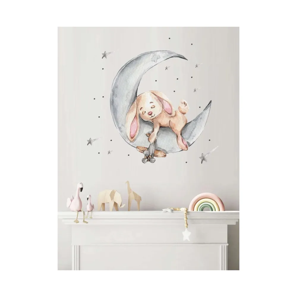 Sticker Perete Autocolant Iepuras pe Luna 90x30 cm
