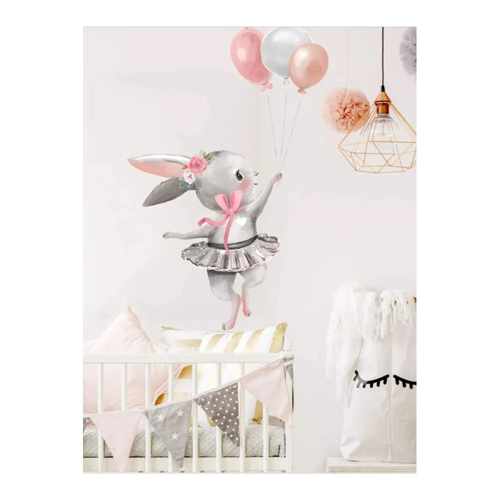 Sticker Perete Autocolant Iepuras cu Baloane 42x63cm