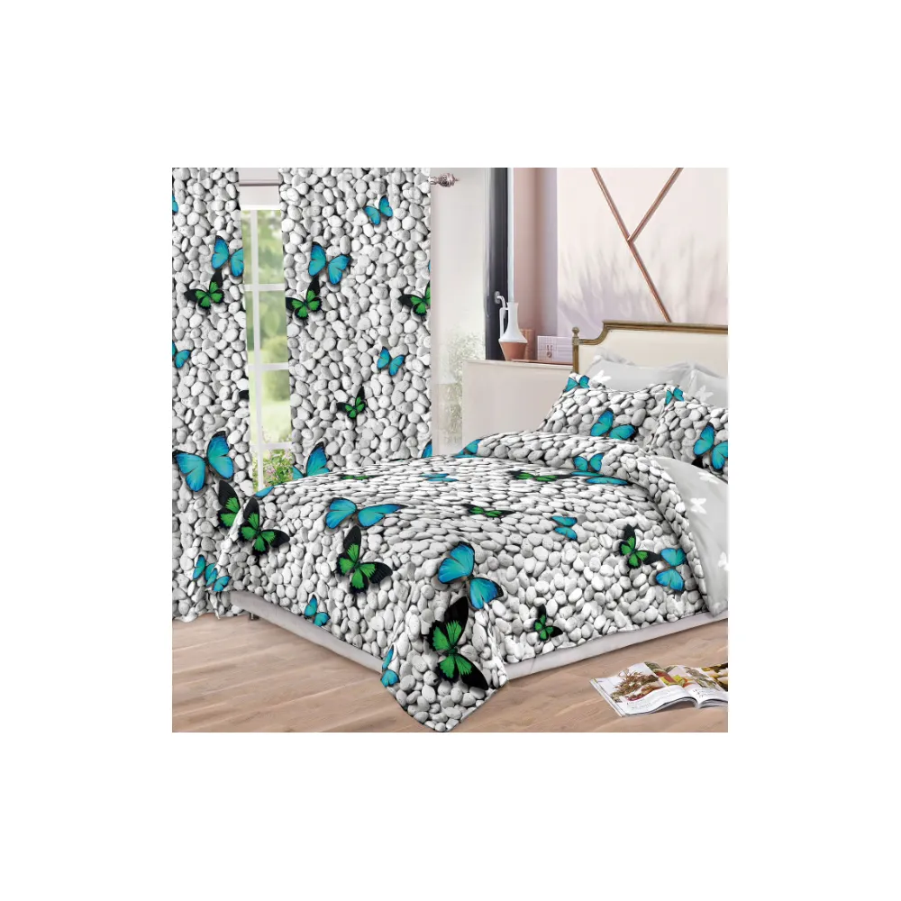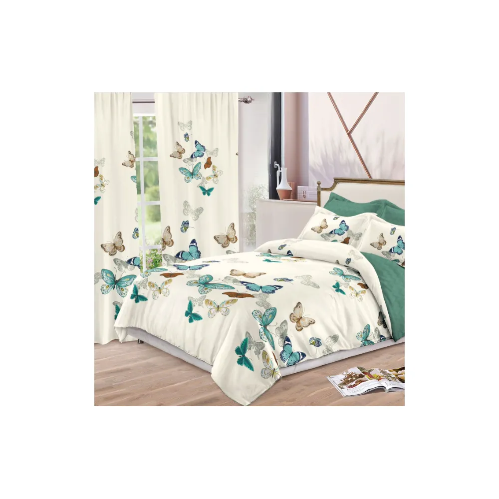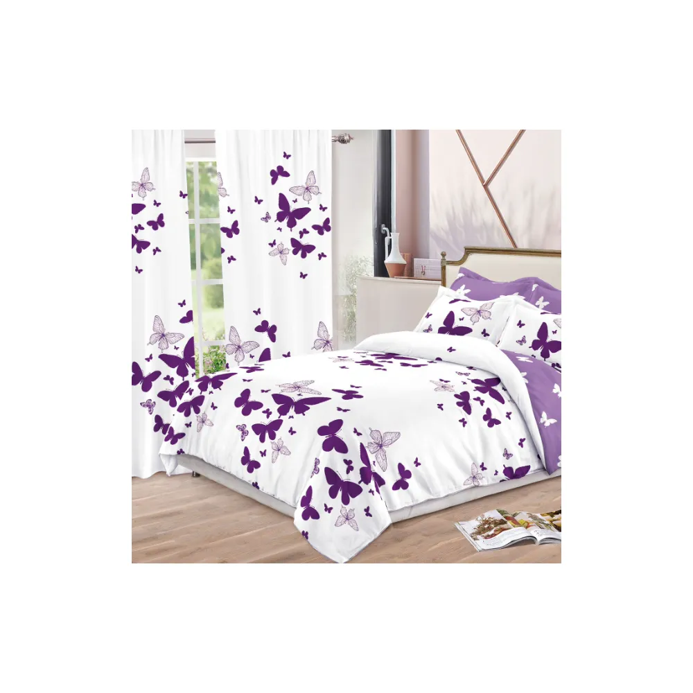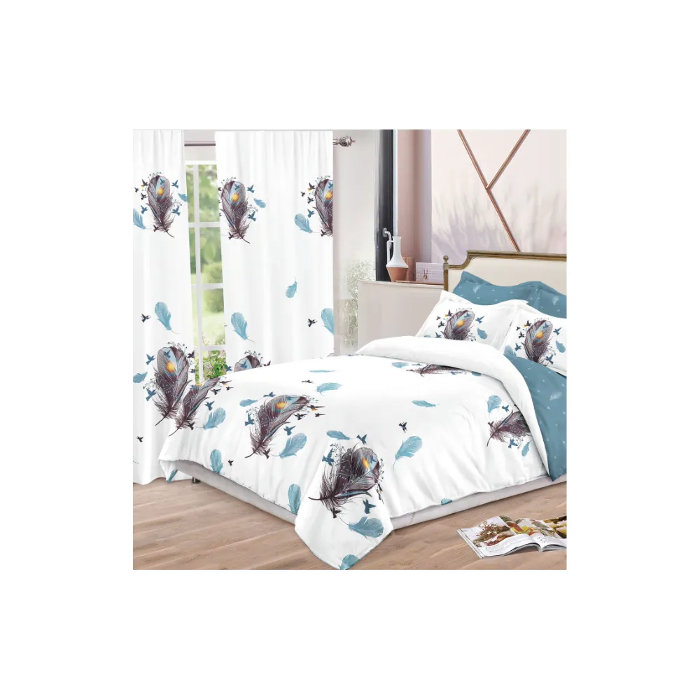 Lenjerie de Pat Bumbac Finet, 6 Piese + 2 Draperii - SIPR-S-02