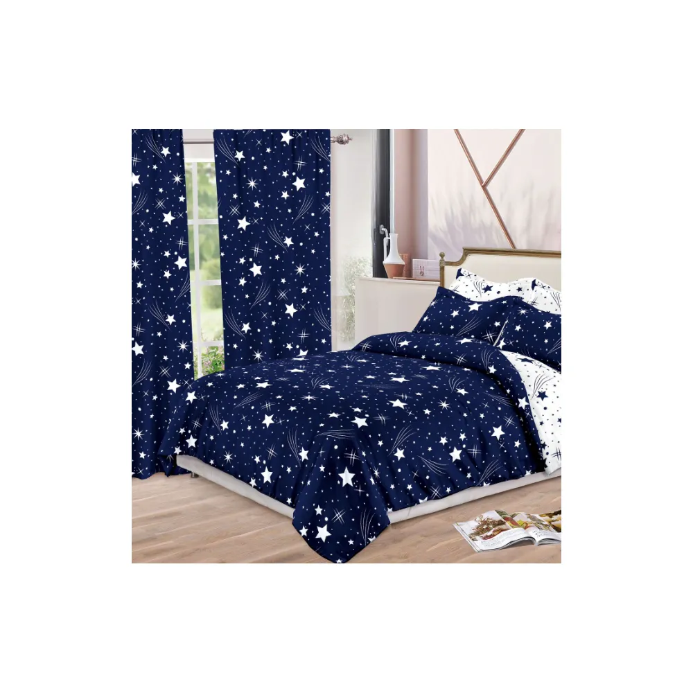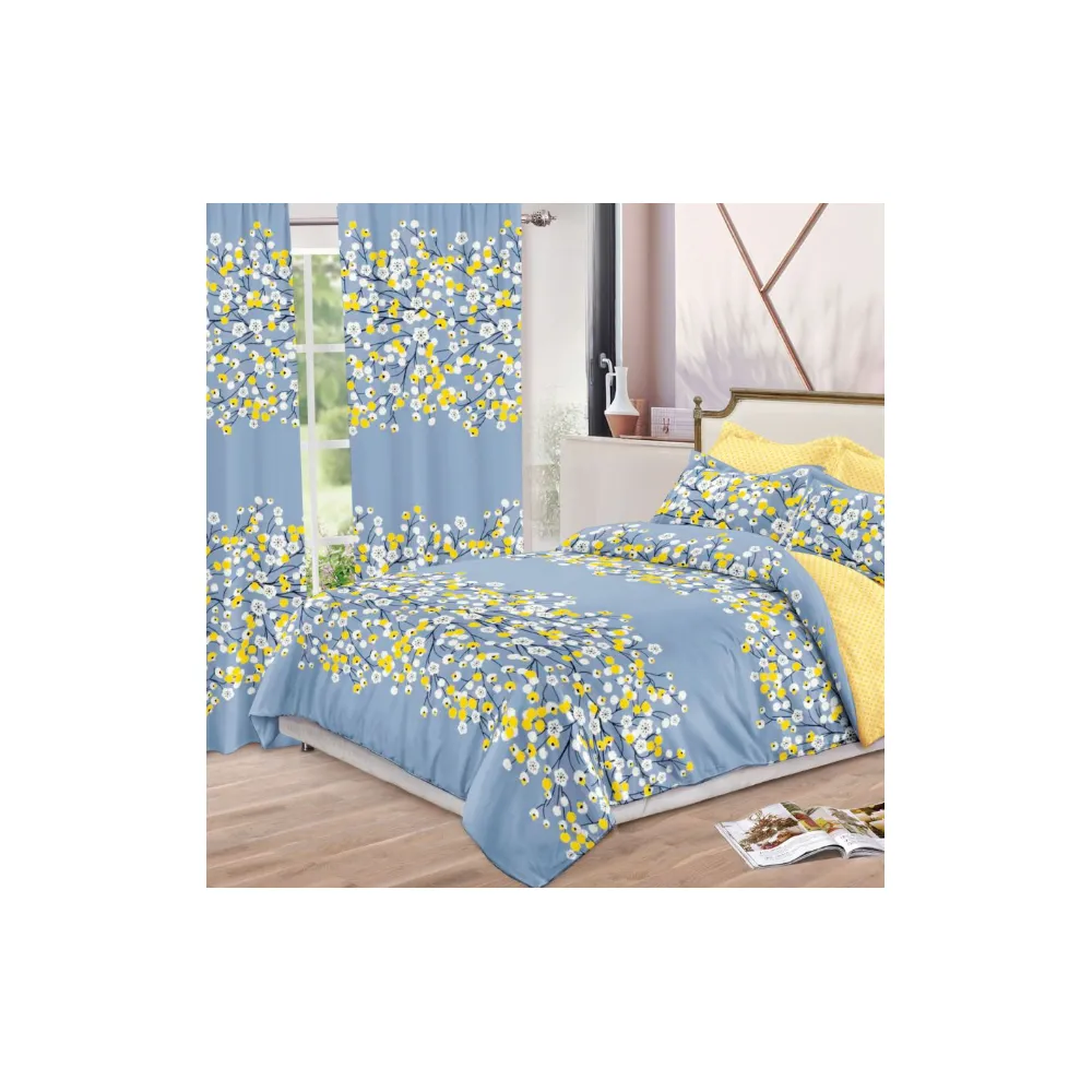 Lenjerie de Pat Bumbac Finet, 6 Piese + 2 Draperii - SIPR-S-03