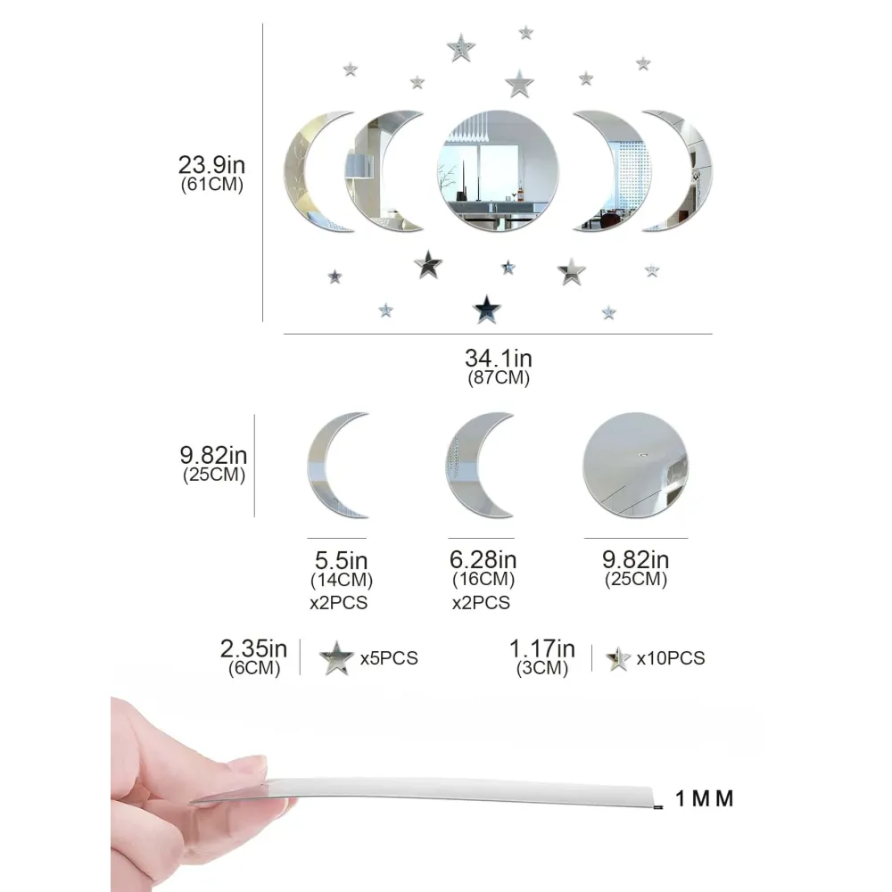 Oglinda Decorativa Autoadeziva, Soare, Luna si Stele, 87x61cm