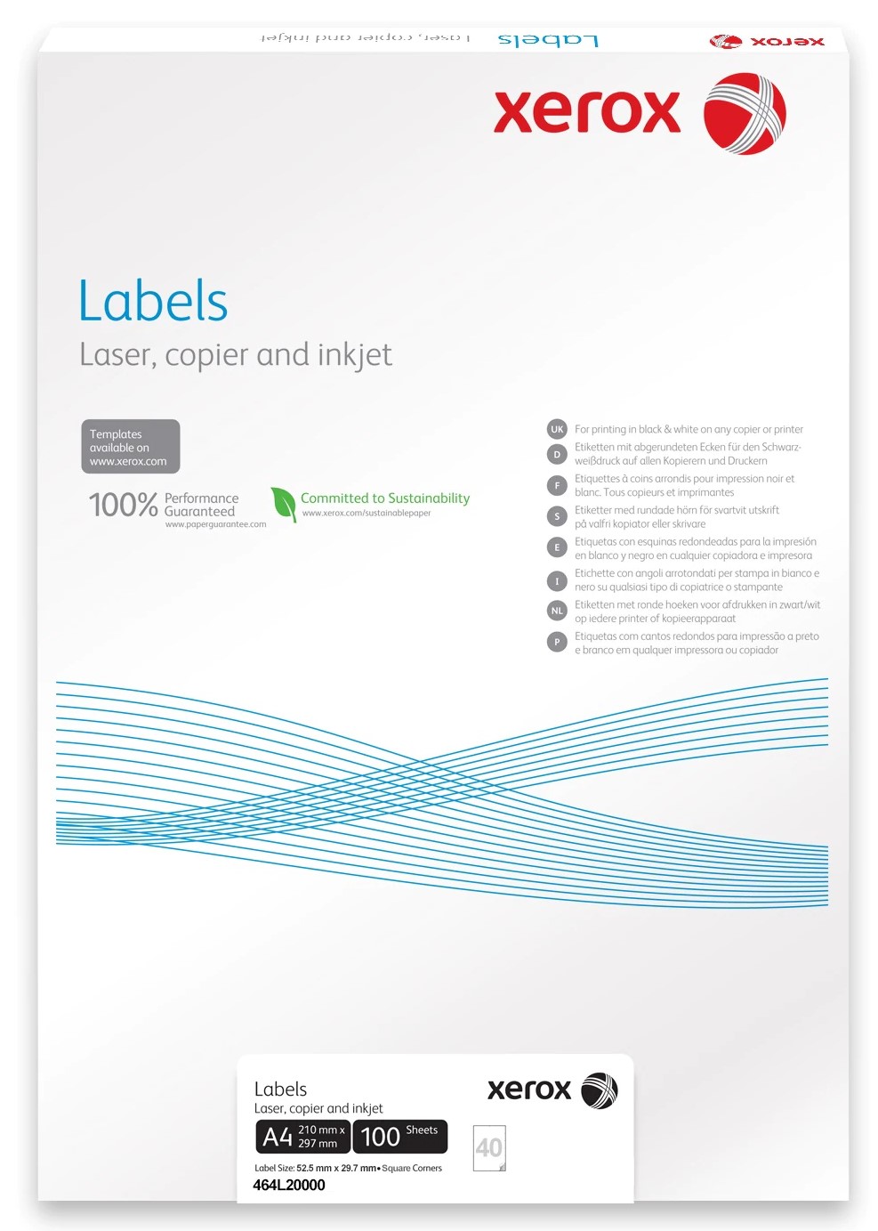 Etichete autoadezive albe 40/A4, 52,5x29,7mm, 100coli/cutie, Xerox 464L20000