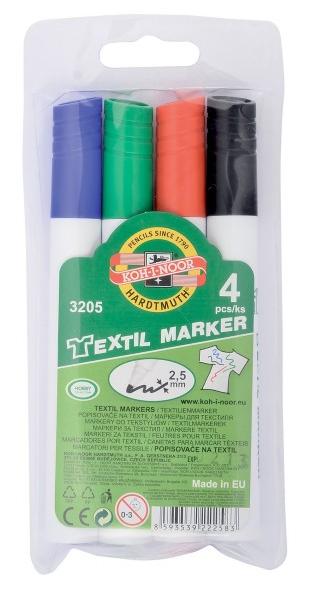 Permanent marker pentru textile 4buc/set (albastru, negru, rosu, verde), varf 2,5 mm, 3205 Koh-I-Noo