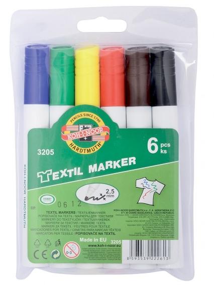 Permanent marker pentru textile 6buc/set (albastru, negru, rosu, galben, maro,verde), varf 2,5 mm, 3