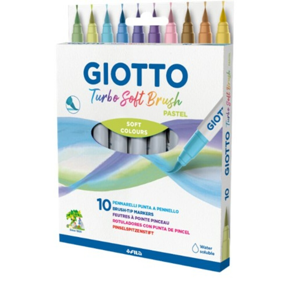 Carioca 10 culori/set, varf tip pensula, GIOTTO Turbo Soft Brush