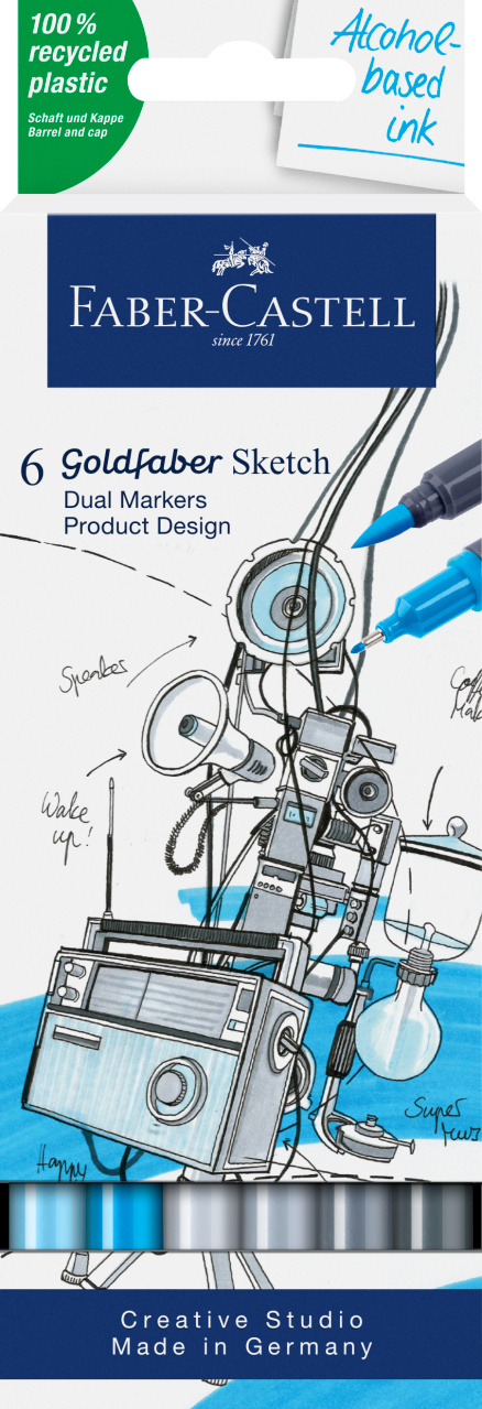 Markere cu 2 varfuri (rotund+pensula), 6culori/set, Design, Goldfaber Faber-Castell - FC164806