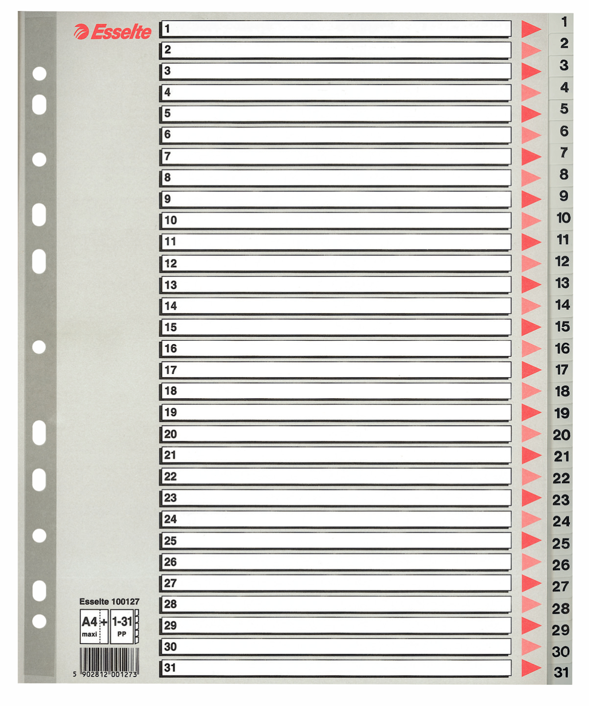 Separatoare plastic A4 Maxi 1-31 gri, Esselte