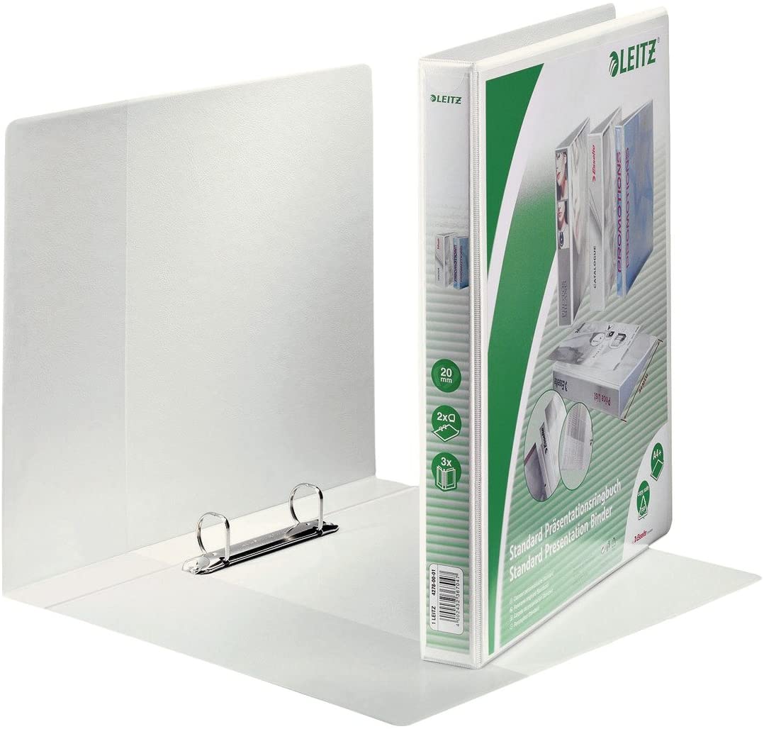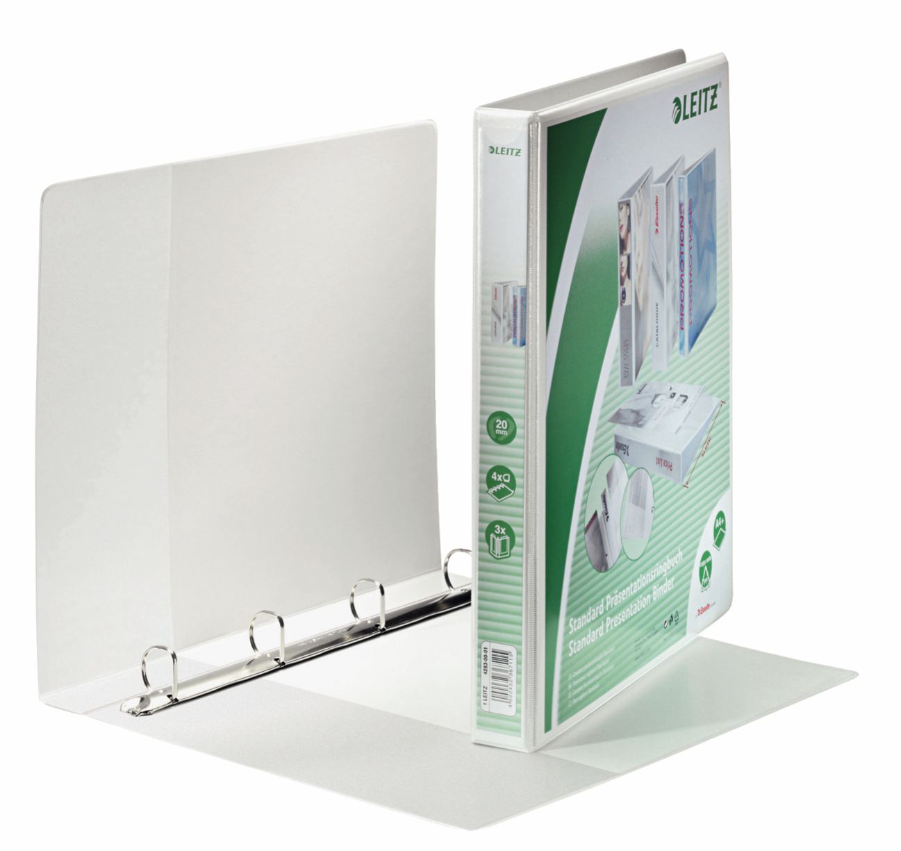 Caiet mecanic A4, 2 inele, alb, cotor 38mm, cu buzunar pe prima coperta, Maxi Panorama Leitz