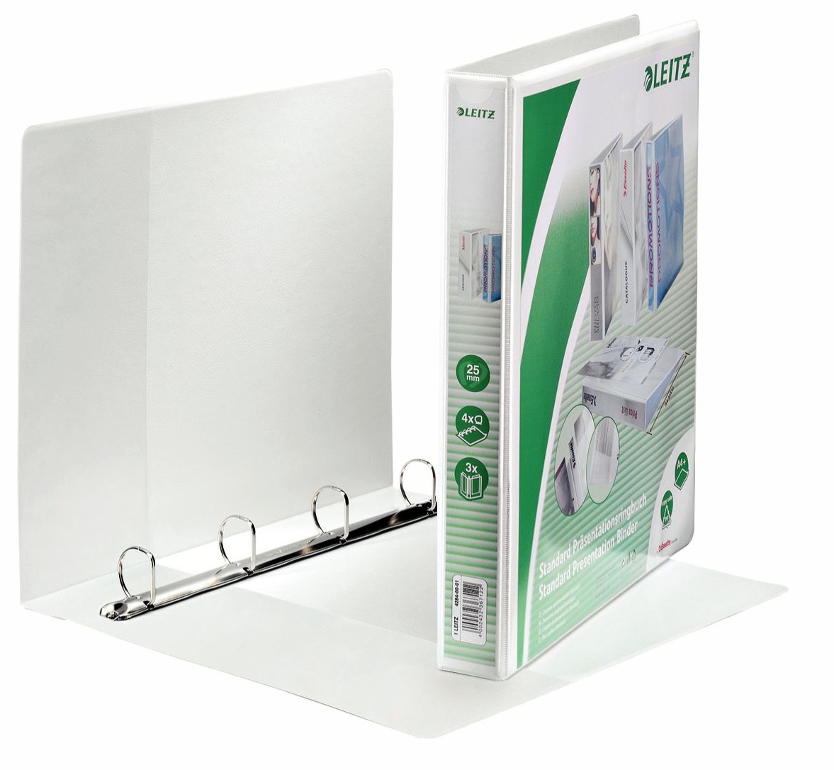 Caiet mecanic A4, 4 inele, alb, cotor 77mm, cu buzunar pe prima coperta, Maxi Panorama Leitz LZ42870