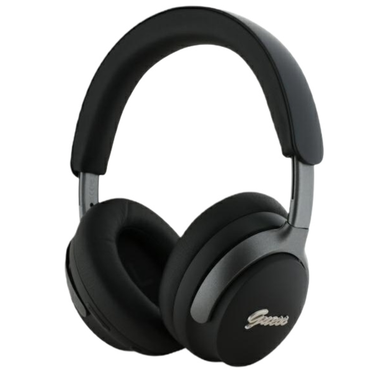 Casti on-ear cu microfon incorporat, fara fir, negru, Metal Script Logo, Guess