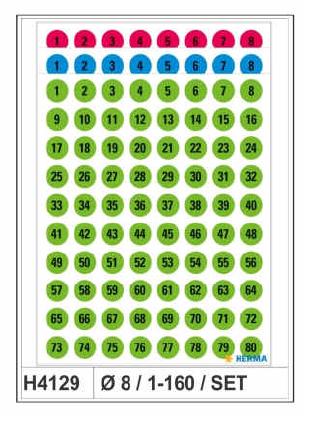 Sticker Vario, numere colorate, ø 8, 1-160, H4129 HERMA