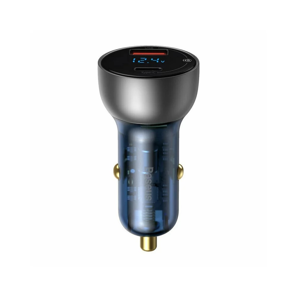 Incarcator auto, USB si USB-C, 65W, PPS si Quick Charge, gri, Particular Digital Display Baseus
