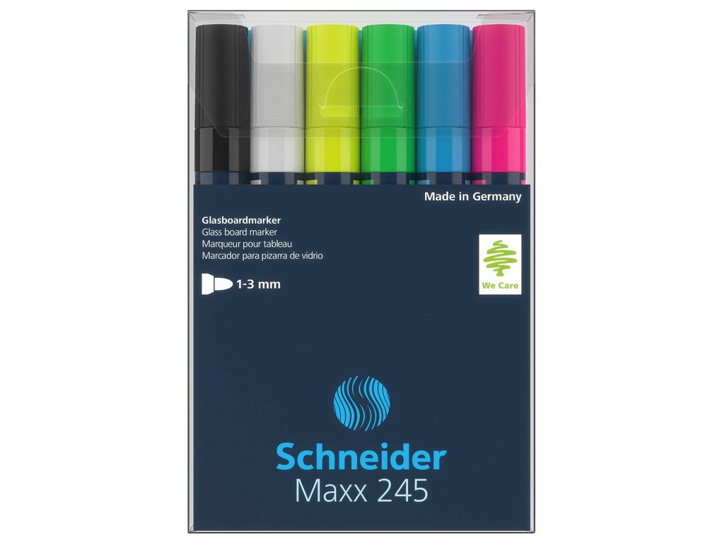 Marker nepermanent pentru suprafete din sticla, 6 culori/set (alb, negru, galben, albastru, verde, r