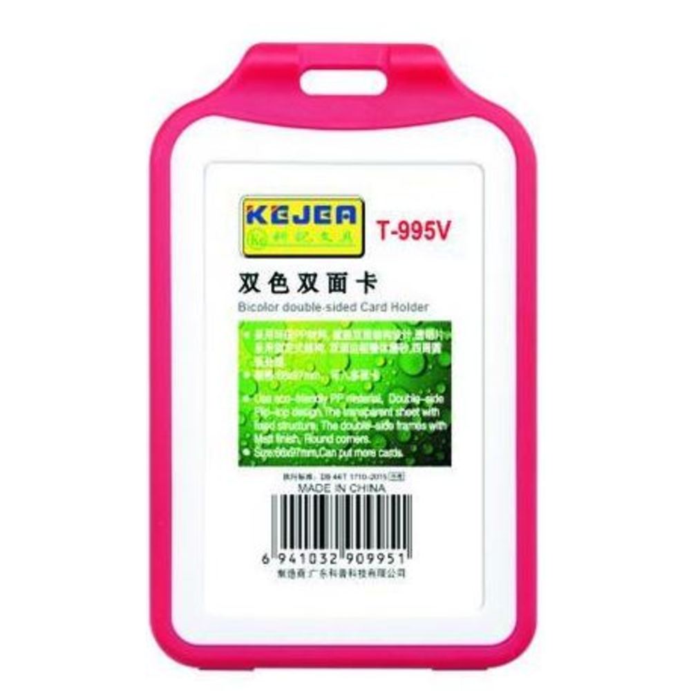 Ecuson plastic rigid pentru carduri, vertical, tip flip, rosu, 66x97mm, 5buc/set, Kejea
