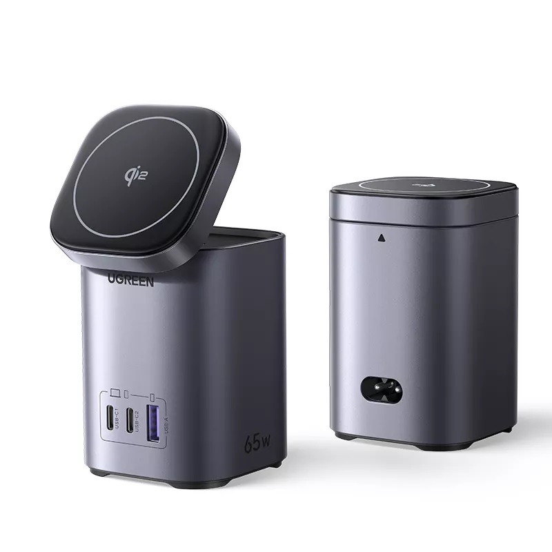 Statie de incarcare 65W GaN, 15W Qi2 wireless stand, 1x USB-A, 2x USB-C, Nexode Ugreen