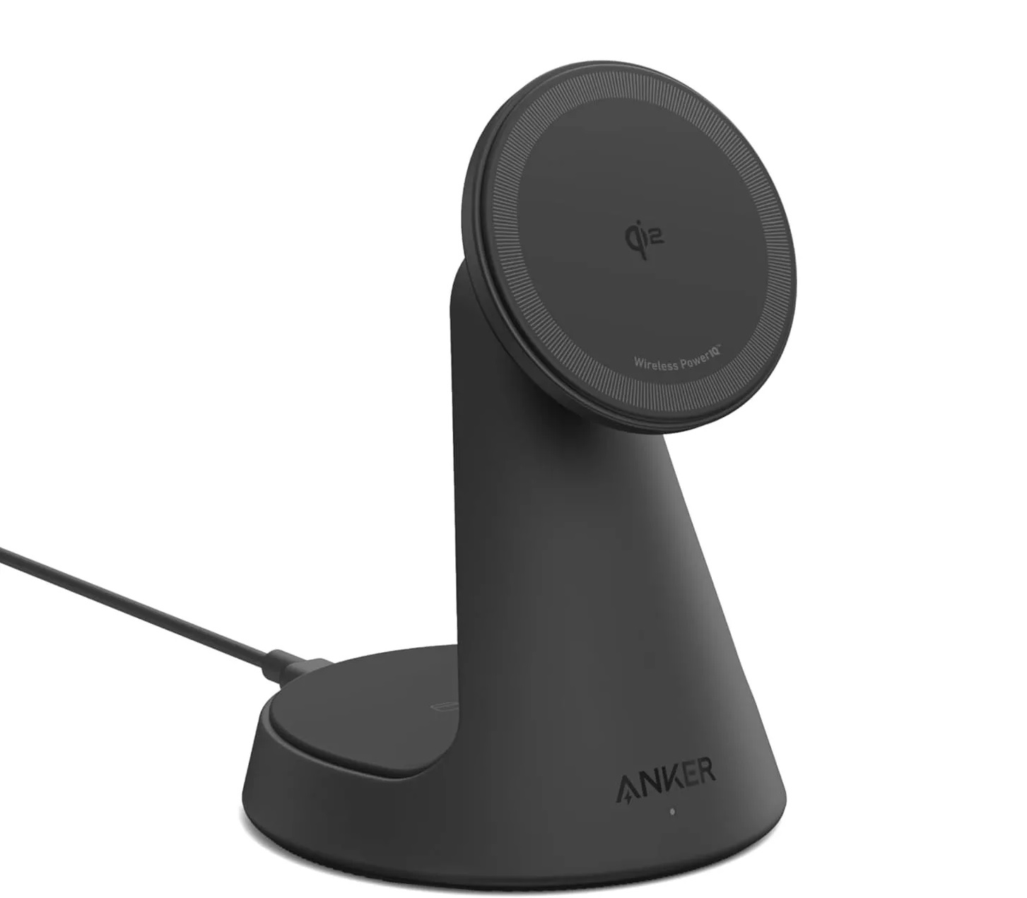 Incarcator wireless magnetic, 15W, pentru iPhone 16/15/14/13/12, negru, MagGo Stand Qi2 360 Anker