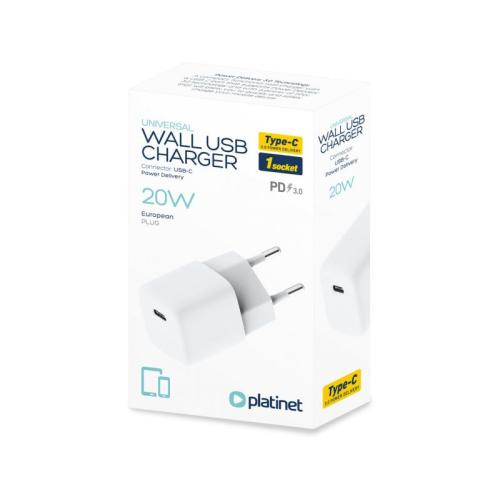 Incarcator retea, USB-C, 20W, alb, Power Delivery 3.0, Platinet