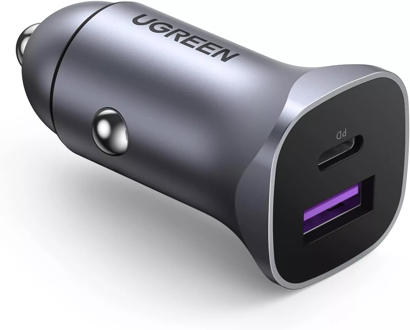 Incarcator auto, USB-C, USB-A, 30W, PD QC 3.0, gri, Ugreen