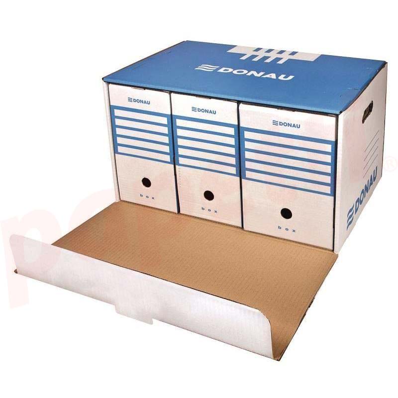 Container arhivare cutii de arhivare, cu capac, cu deschidere frontala, 555x315x360mm, albastru/alb, Donau