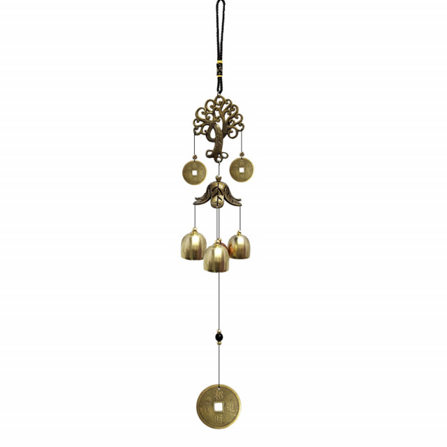 Clopotel de vant cu floare de campanula, monede aurii si Copacul vietii pentru casa sau gradina, auriu