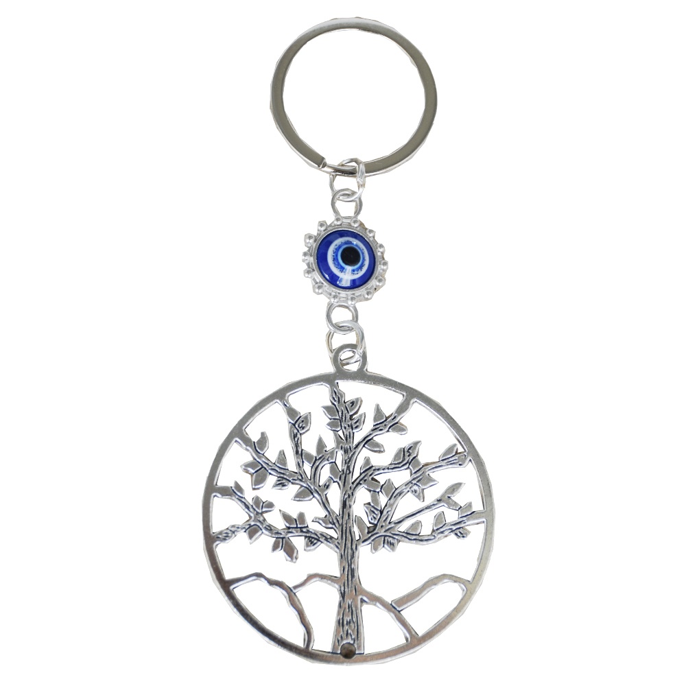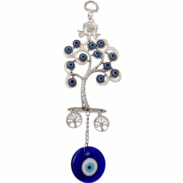 Amuleta Feng Shui pentru protectie si noroc, model Copacul Vietii si Ochiul lui Horus, argintiu