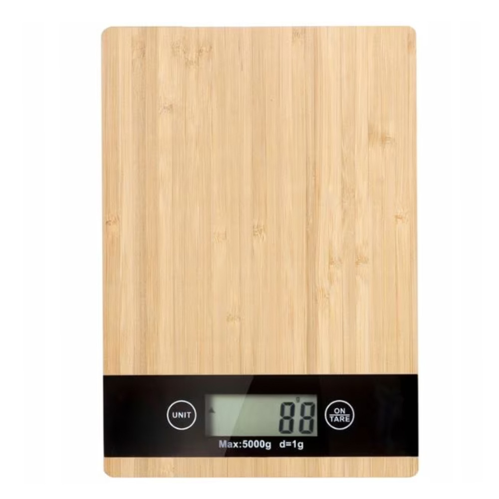 Cantar electronic de bucatarie Pufo din bambus, afisaj digital, sarcina maxima 5 kg, maro