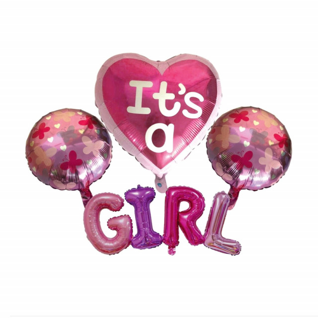 Set 4 baloane aniversare Pufo Its a Girl, roz