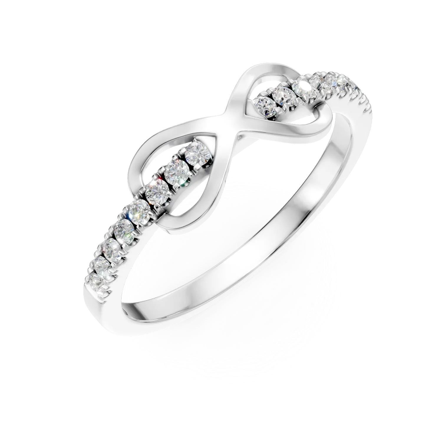 Inel cu infinit din aur alb cu diamante de 0.1ct