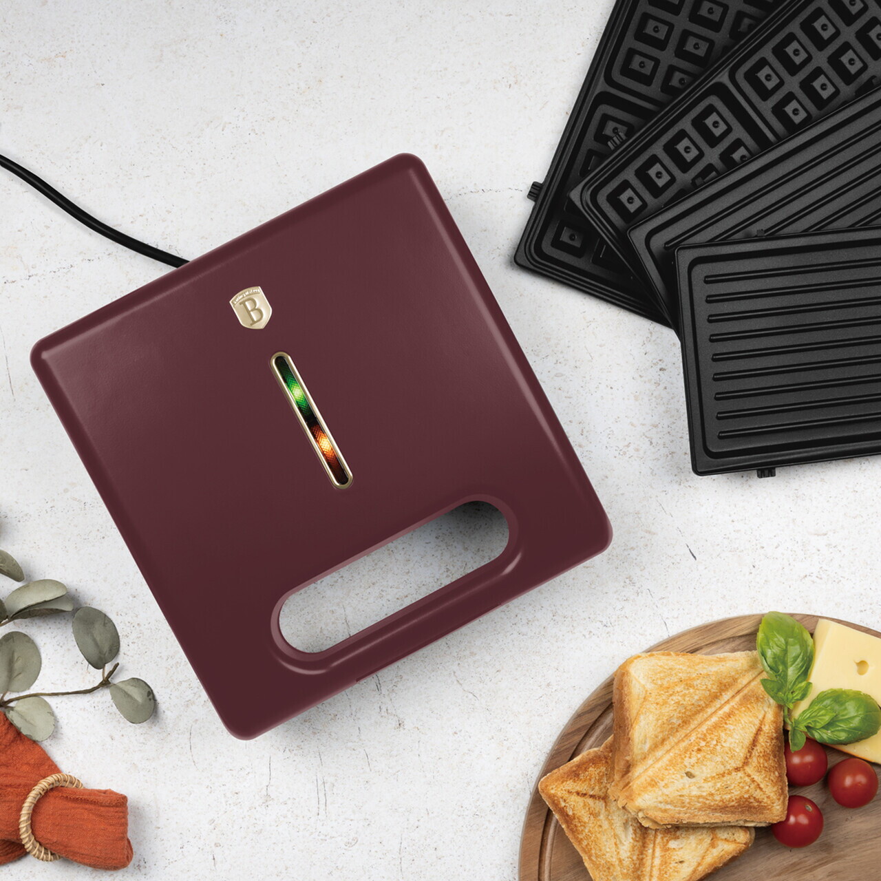 Sandwich maker 3 in 1 Berlinger Haus, Leonardo, 22.5x13 cm, aluminiu, visiniu mat