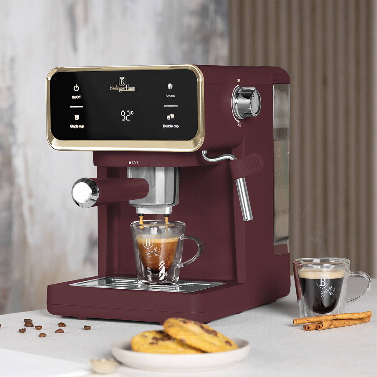 Espressor 3 in 1 Berlinger Haus, Leonardo Nordic, 950W, 23x26.5x30.5 cm, inox, visiniu mat/natur
