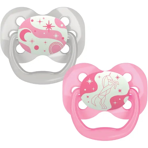 Suzetă simetrică din silicon Sleepy Koala fosforescentă roz 6–18 luni, 2 bucăți, Canpol