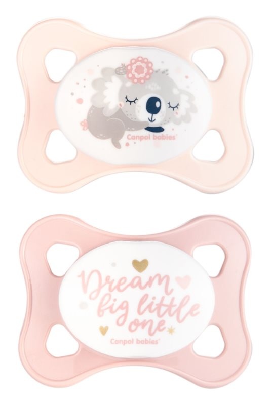 Suzeta simetrica din silicon Sleepy Koala fosforescenta roz 0-6l, 2 bucati, 22/658, Canpol